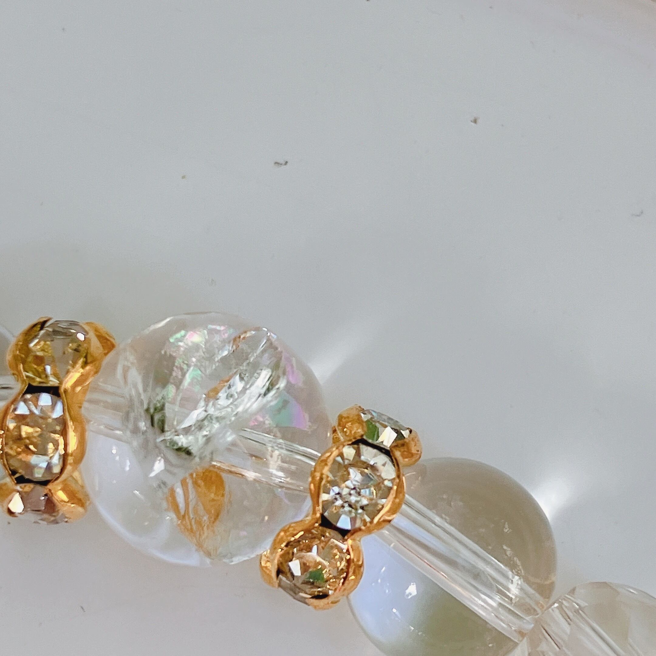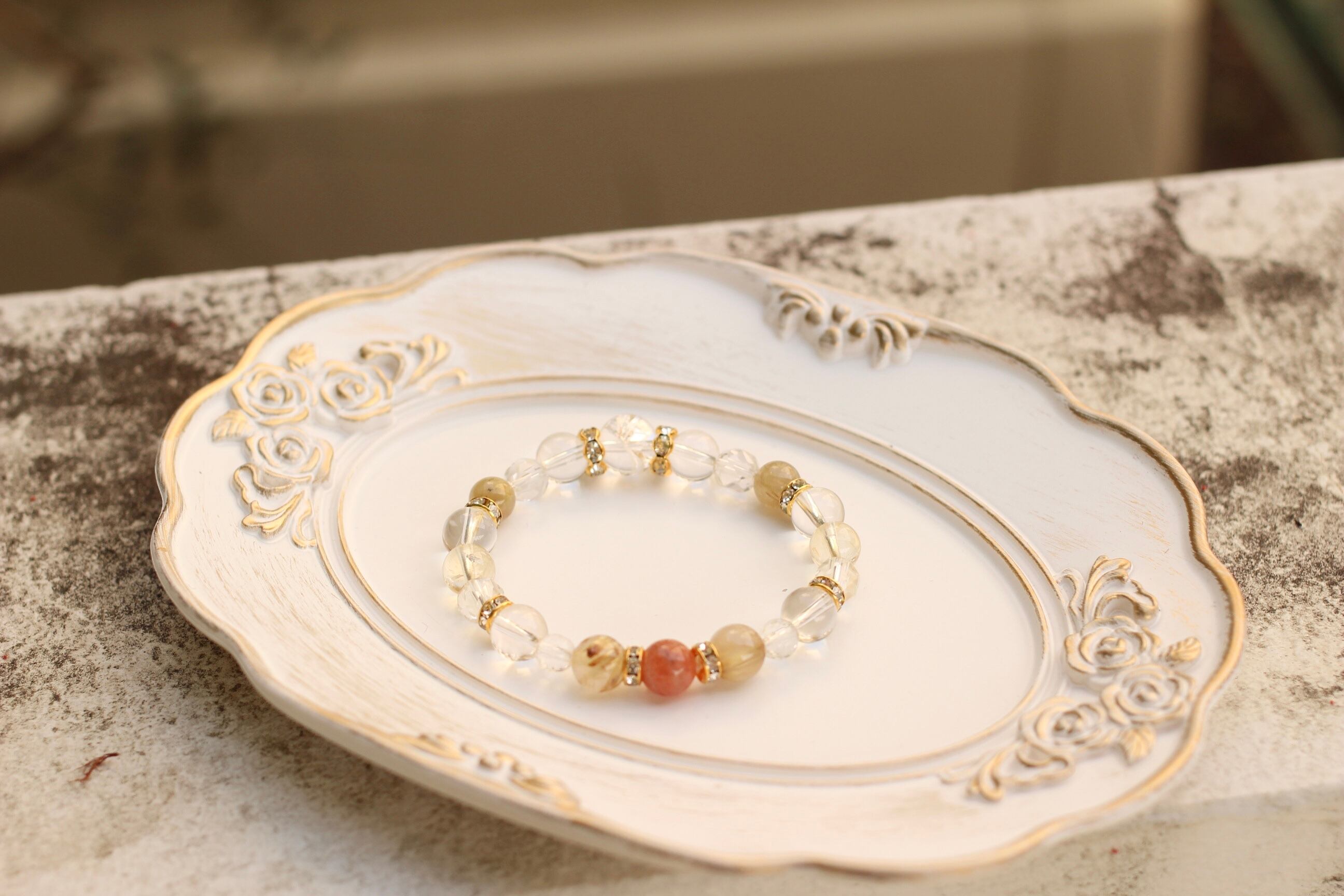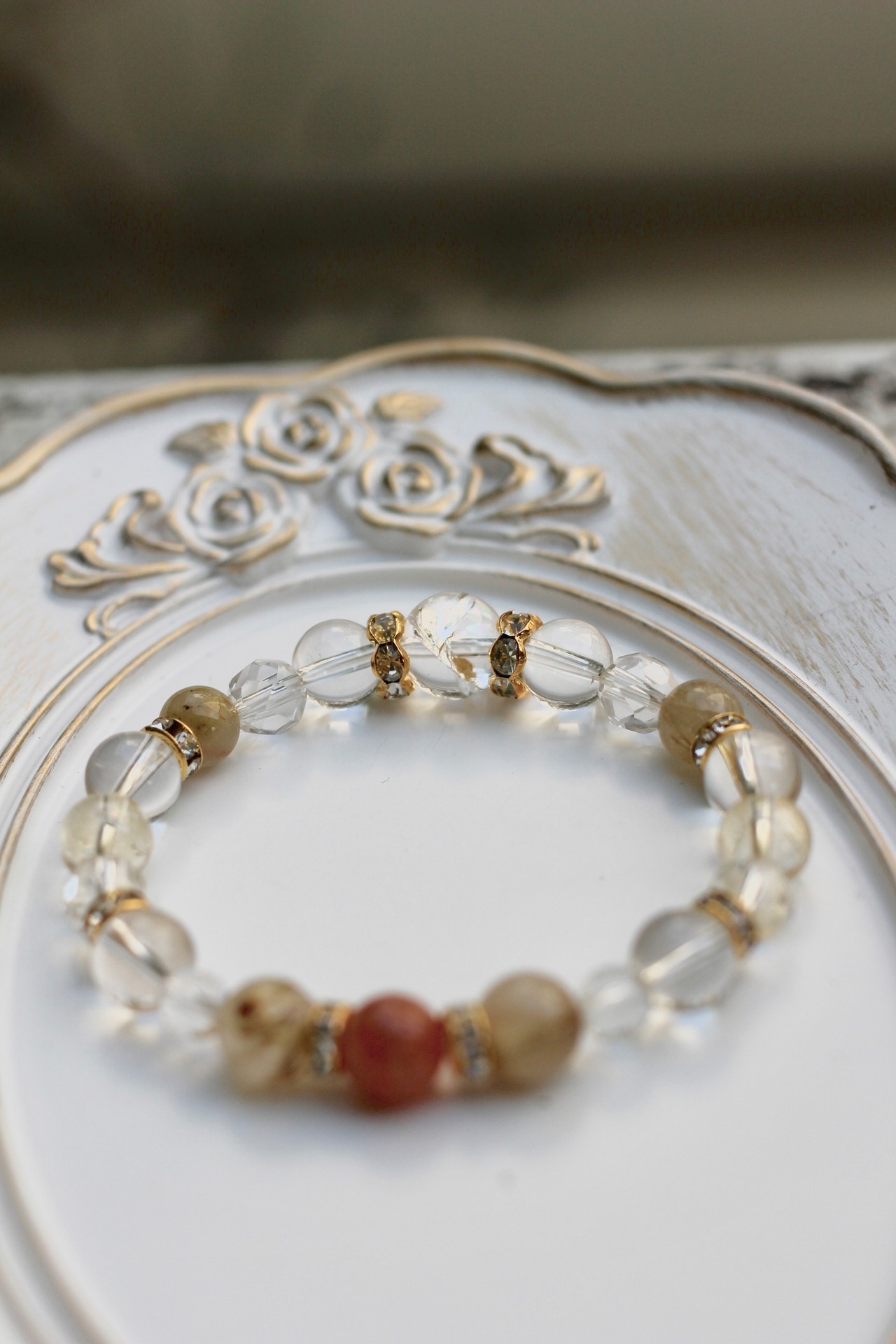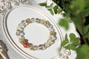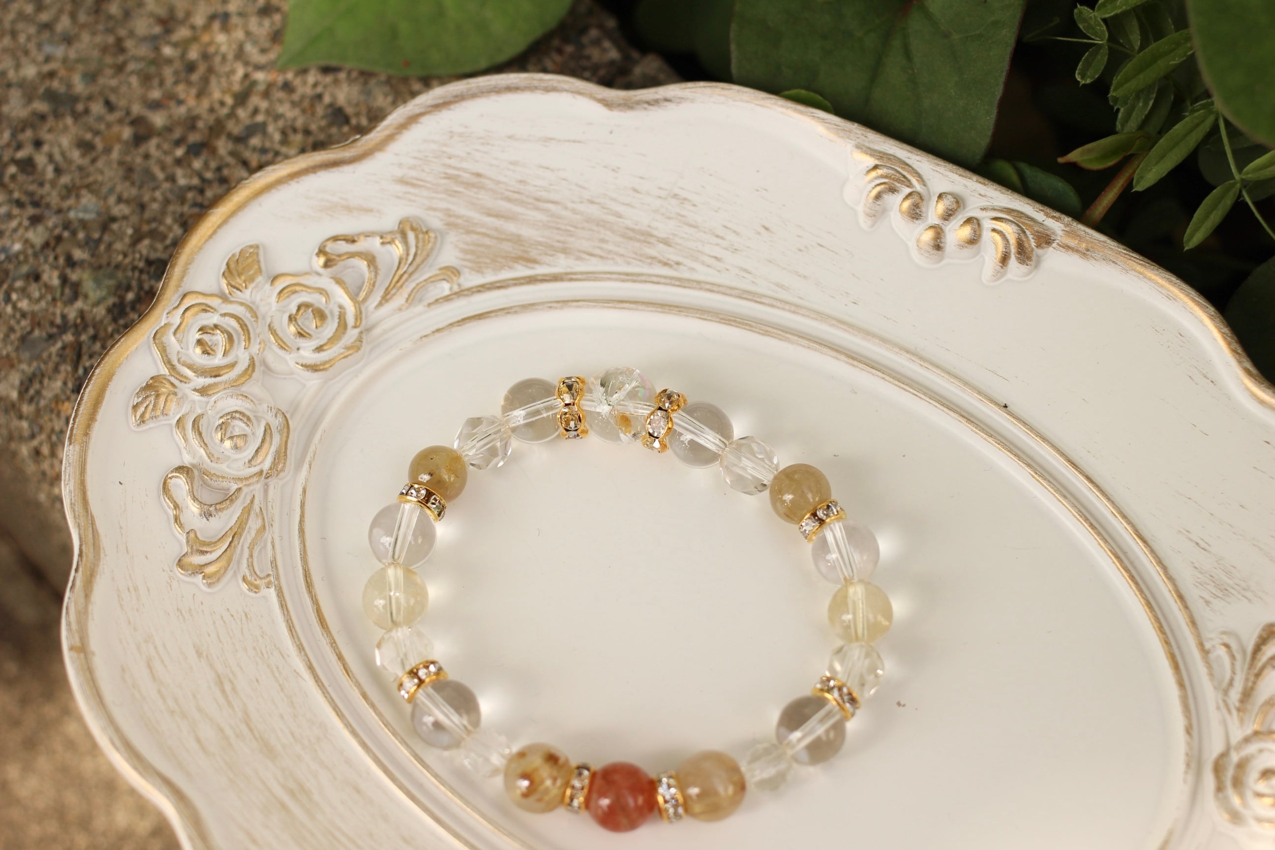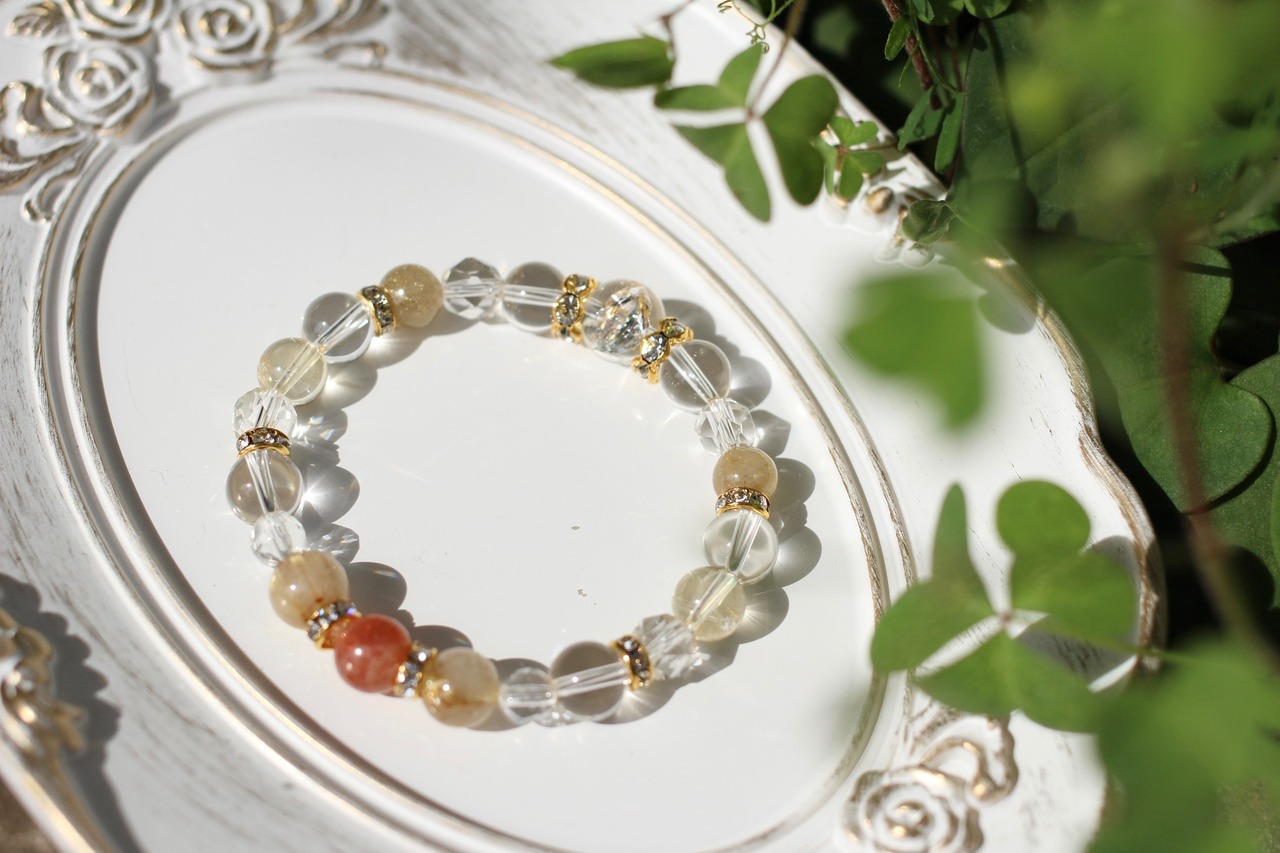 レインボークォーツ、ルチルクォーツ、シトリン、サンストーンを使った「光のブレスレット」です。